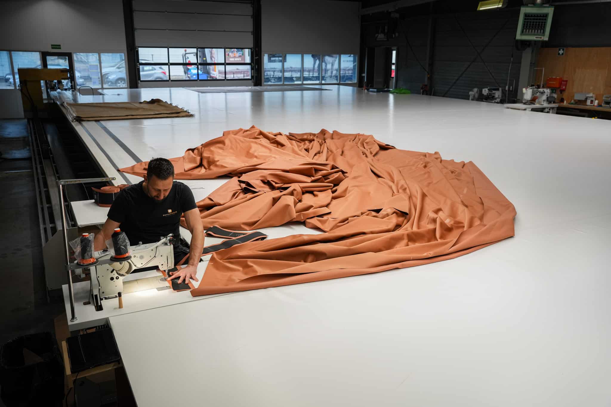 Onze confectieafdeling maakt de lussenband, bevestigt deze aan de tent en werken alle details van de stretchtent af.