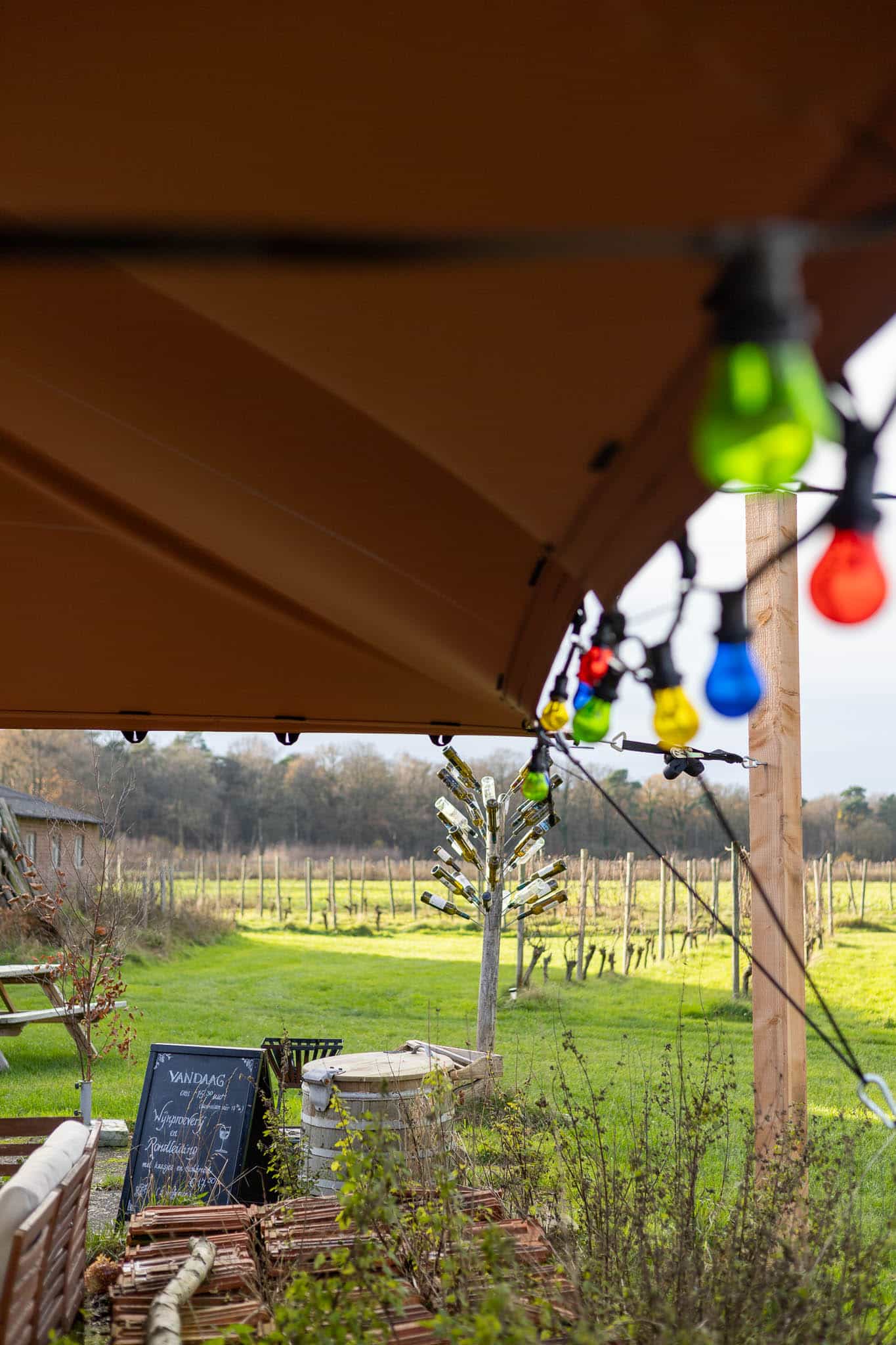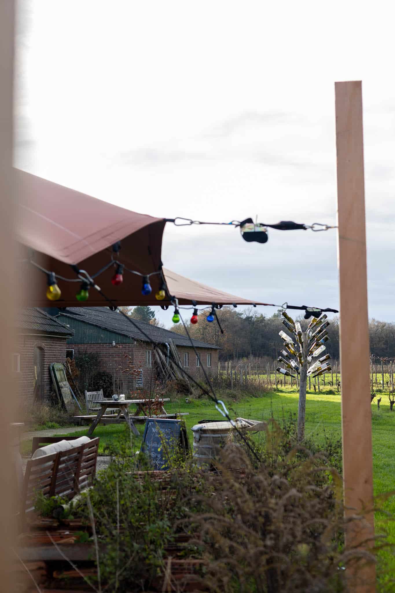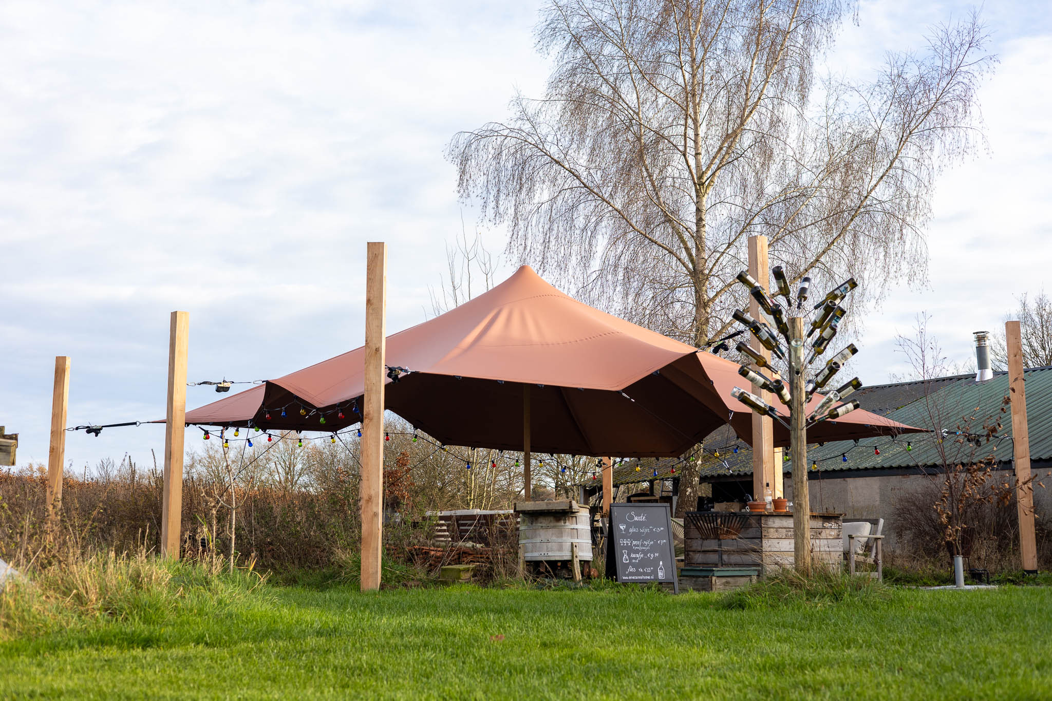 Bij B&B Erve Zonnehoeve realiseerden we een terracotta kleurige stretchtent overkapping van 7×7 meter, uitgevoerd in een bijzondere ronde vorm. Deze special shape brengt warmte en karakter naar het terras en sluit perfect aan bij de landelijke uitstraling van de B&B. Dankzij de zachte terracotta tint ontstaat een sfeervolle plek waar gasten het hele seizoen door beschut kunnen zitten.